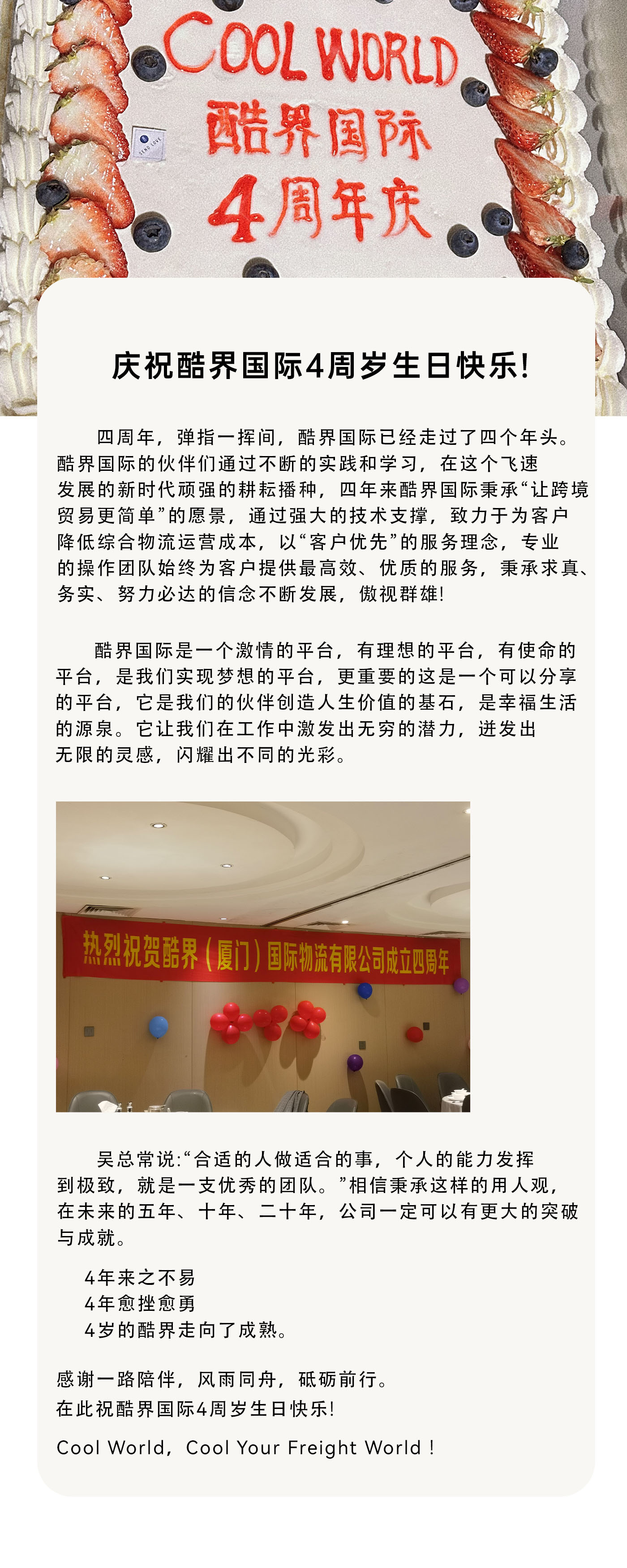 庆祝酷界国际4周岁生日快乐!